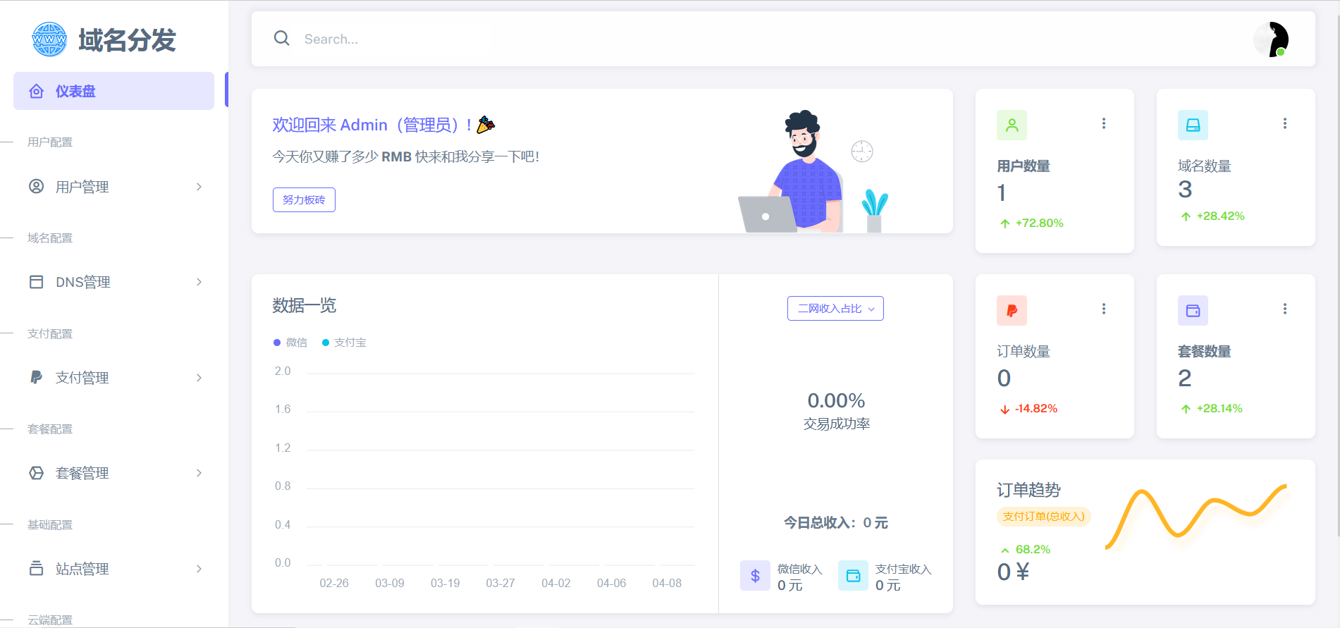 管理用户,让您一览无余,收入明细,让你时刻舒心,套餐服务,让您管理更快捷,更轻松.